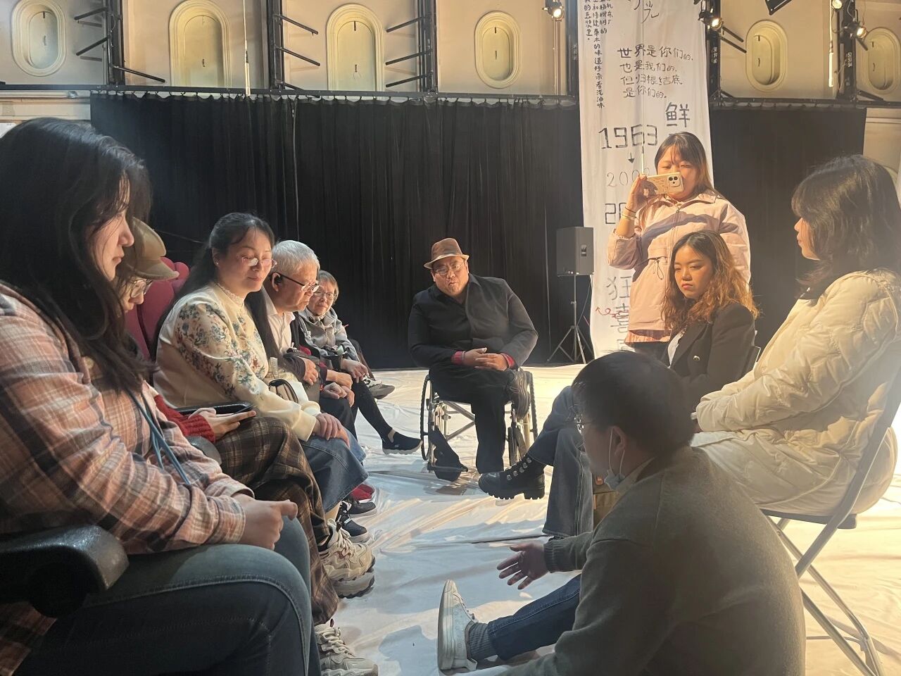 无障碍纪录剧《停在时光里的人》:团队在原纪录剧场基础上打造无障碍戏剧版,让视障观众与师生并肩而坐,用声音触摸时代故事。通过将舞台视觉语言转化为精准的口述影像解说,历史场景在黑暗中“生长”出轮廓。预留的前排座位更让视障观众清晰捕捉舞台上的每一个声音细节,实现从“观看”到“在场”的沉浸式体验。盲人观众的真挚反馈,也成为我们升级无障碍版本的重要指引。