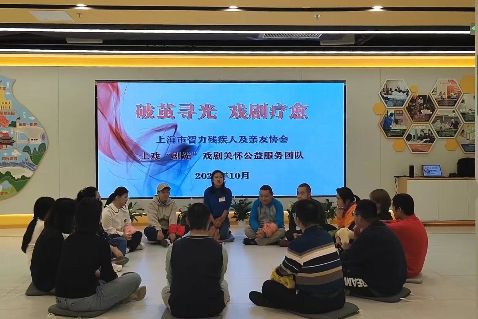 破茧寻光·戏剧疗愈”工作坊:作为面向成年心智障碍者戏剧疗愈的创新实践,“剧光”与上海市智力残疾人及亲友协会联合打造“破茧寻光·戏剧疗愈”主题活动。针对智力残疾人的社会困境,团队以更多元的形式,绕开语言沟通障碍,让参与者在音乐舞动与手工创作中建立集体肢体默契、表达内心情绪、学会沟通与自我肯定。活动帮助心智障碍者看见自我价值,实现从突破表达茧房到寻回自信光芒的蜕变。