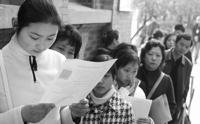 有趣的是,报名大厅里同时还设有北京师范大学、四川音乐学院和日本东邦音乐学院的招生摊位,供学生选择。一位正在填写上海音乐学院报名表的北京同学告诉记者,除了正在报考的上音外,他另外还报考了北京、天津、四川等五六个省市的音乐学院,面对记者“到各地赶考是否有些盲目”的问题,他不好意思地笑了:“多报一些似乎心里才有底。”