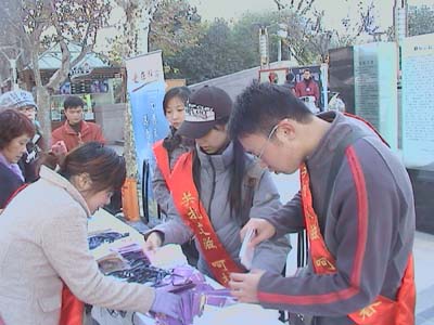 活动地点位于南京西路上繁华的静安公园。虽离学校不远,但志愿者们还是怀着极大的热情一早就赶到了活动地点帮助进行现场工作。四位志愿者通力合作,在较短时间内将数百份有关艾滋病预防的资料进行整理,向行人免费发放,同时派送预防艾滋病的安全用品。南京西路上商家云集,人流量很大,理论上讲有利于进行公益活动的宣传与开展。但实际上安全用品的发放并不顺利,也许是由于“艾滋病”这一宣传内容的特殊性。但志愿者们并未因此懈怠,反而是向路人进行热情讲解。虽不深入,但态度真诚友善,以真心去消除人们心中对于艾滋病的恐惧及对于艾滋病患者的偏见。当我们看到宣传资料上触目惊心的数字,当我们看到行人对此避而远之的态度,作为志愿者,我们更是深感社会责任的重大。我们有责任让人们正确认识艾滋病;我们有责任为艾滋病患者营造一个公平,和谐的环境,我们更有责任维护整个社会的和谐。因为我们有共同响亮的名字��上戏志愿者。