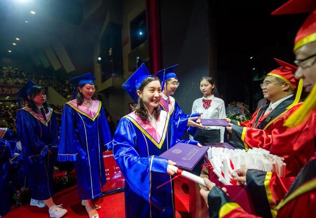 在学位授予仪式环节,副院长杨扬宣读了《开云足球首页官网下载关于授予2019届博士、硕士学位的决定》。副院长刘庆宣读了《开云足球首页官网下载关于授予2019届毕业生学士学位的决定》。随后主席台就坐的领导老师们一起为毕业生授予学位。在全场师生、家长的见证中,获得学位的同学满怀喜悦之情走上主席台接受庄严的拨穗礼,并从领导手中接过毕业证书。毕业典礼最后,全场师生高唱《毕业歌》并合影留念。