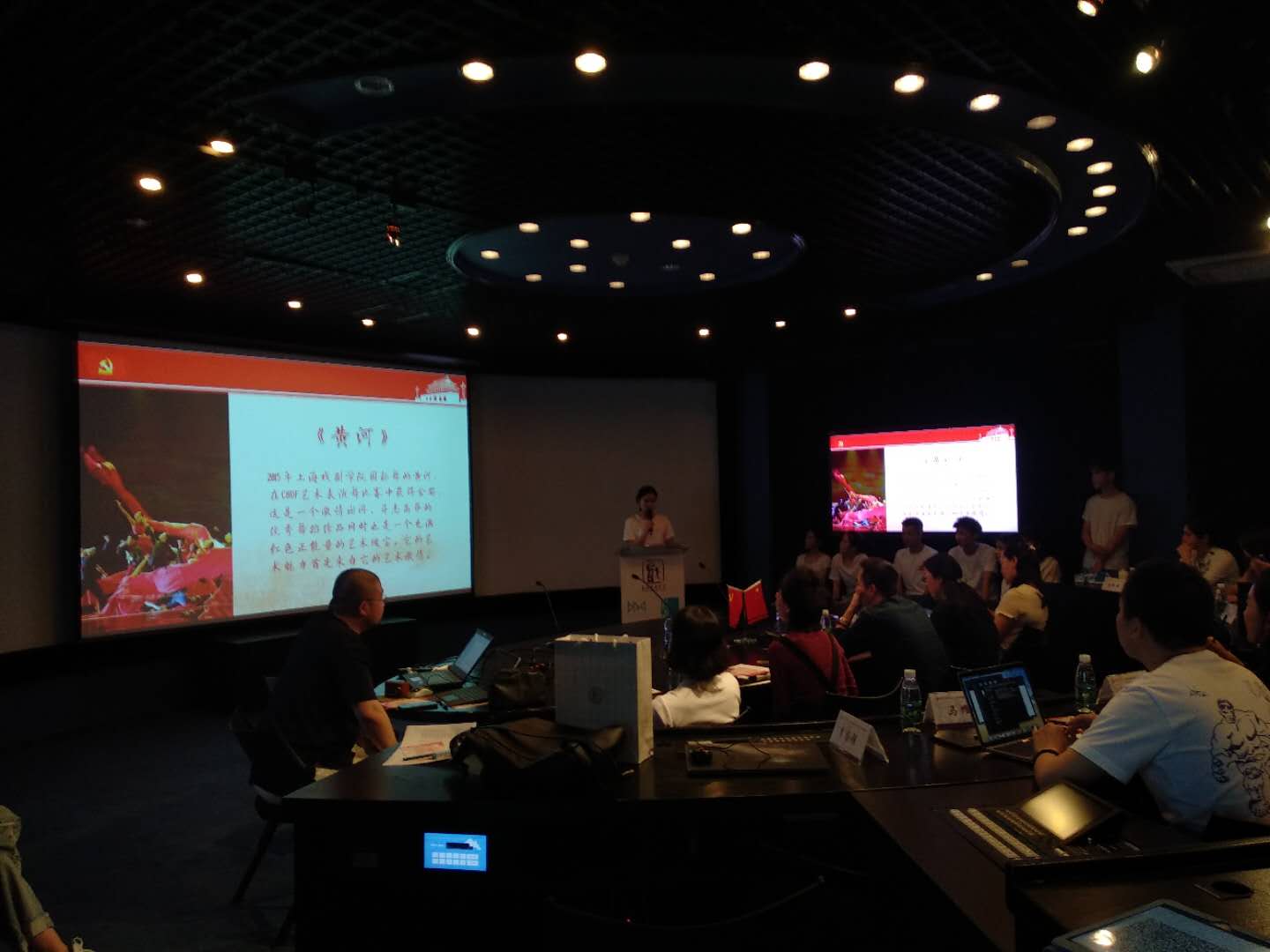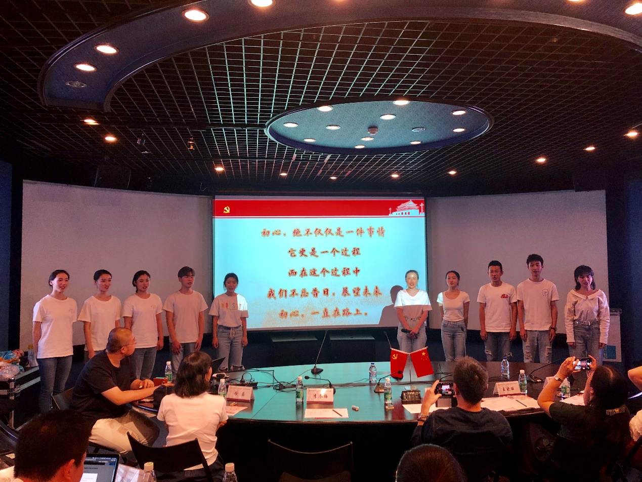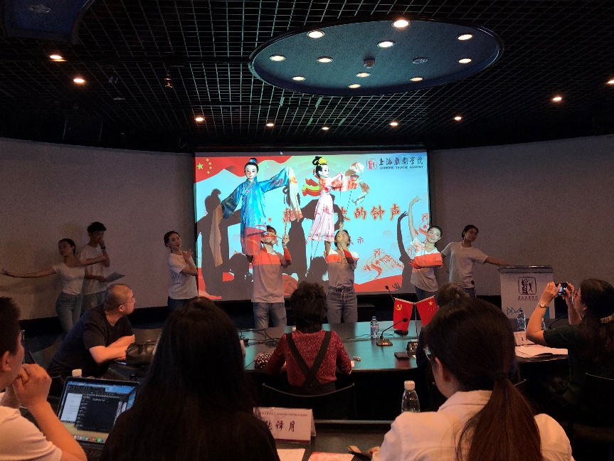 第一组的10位同学,分别来自戏曲学院、电影电视学院和舞蹈学院,他们在戏曲学院学生党支部书记夏逸石老师的带领下,将整场答辩展示活动编排为一场小型朗诵剧,为我们讲述着儿时弄堂的记忆,憧憬着美好的新时代。