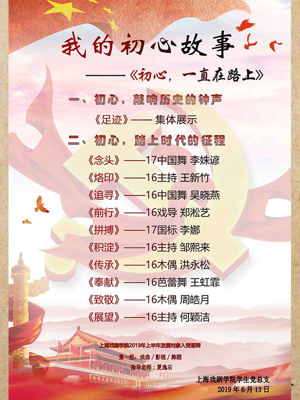 戏曲学院 16级戏剧影视导演(戏曲)的郑淞艺同学谈到自己初心故事,那是在做一个戏的时候,他采访了静安寺街道居委会的一位75岁的支部书记,他的事迹对郑淞艺产生了深深影响。一位优秀的共产党员就应该这样,这个社会上从来不缺好人,只不过好人都在平凡中做着他们认为平凡的事。