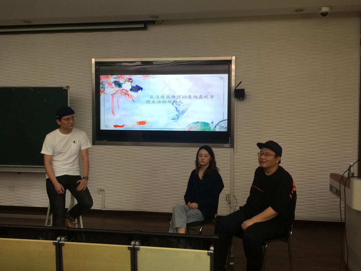 2019年6月6日下午,我校MFA校友王士龙、赵聪及MFA在读的徐铭泽,作为豆瓣高分青春剧《你好,对方辩友》的主创团队,在红楼209教室为同学们带来了主题为“为了梦想的万一,做好一万种准备”的分享会。