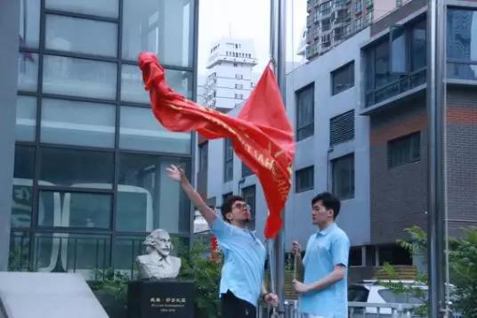 在激昂的《国际歌》歌声中,庄严的入党宣誓仪式正式拉开了序幕。之后在《国歌》声中,五星红旗缓缓升空。