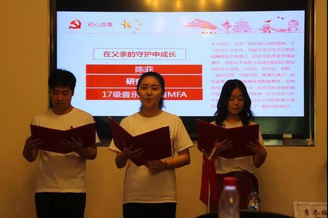 来自创意学院17级艺术管理专业的刘淼同学讲述了她幼年时因电影《建国大业》中闻一多先生慷慨激昂的演讲而萌发的入党初心,也是这份初心引领着她在学习和工作中做一位敢于拼搏、勤奋工作的预备文艺工作者。作为新时代的青年,她深感时代的重担,始终在路上,便是她给予时代的回音。