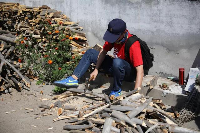同学们顶着烈日入户,来到杀虎口村村民苏德明家。杀虎口村目前只有130余户人家,村落不大但是规整,具有鲜明的北方特色。我们参观院落,帮助砍柴,打扫院落,了解右玉人民都吃什么、想什么、要什么。我们盘坐在炕上,听老人家讲治沙的故事。今年已经79岁苏德明老人家见证了右玉从不毛之地变为塞上绿洲,凝视老人的眼睛,看着他布满皱纹的双手,听着他浓厚的山西口音,我们更加感受到了右玉人的伟大。