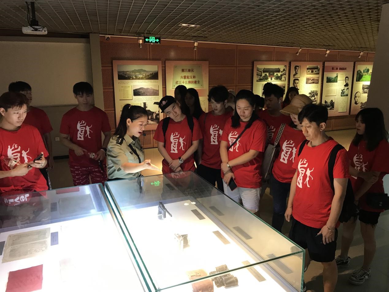 第二天一早,上戏实践团师生首先来到了鄂豫皖革命纪念馆,鄂豫皖地区是革命的摇篮,是土地革命时期黄麻起义的策源地,是抗日战争时期新四军的根据地,也是刘邓大军千里跃进大别山的主阵地。鄂豫皖人民以坚定的革命信念和不屈不挠的革命精神,铸就了“大别山红旗不倒”的历史丰碑。鄂豫皖革命纪念馆作为全面展示鄂豫皖地区革命历史的综合性场馆,是党员发展学习的首选教育基地。师生们听着讲解员深入浅出带着灼灼真情的讲解,从中了解到革命先烈英勇的事迹,学习着先烈们大无畏的革命精神,感受着先烈们强烈的爱国情怀,深受教育。师生们不但在思想上得到了升华,更表示将在日后的学习工作中真正能够做到“不忘初心、牢记使命”,为新时代中国特色社会主义的发展用心尽心。
