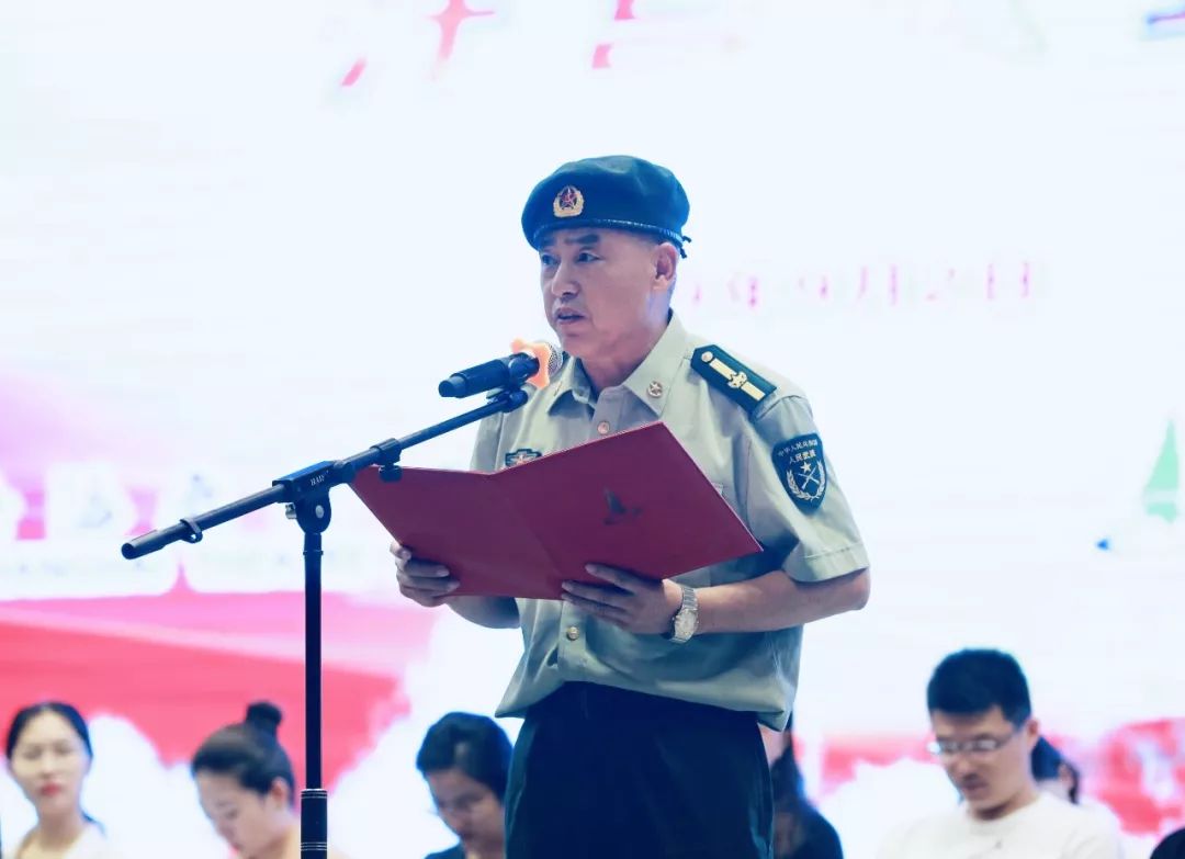 党委副书记、副院长张伟令向军训总教官授旗,接下来的8天时间里,新生们将在军训基地完成新生开学的第一课。