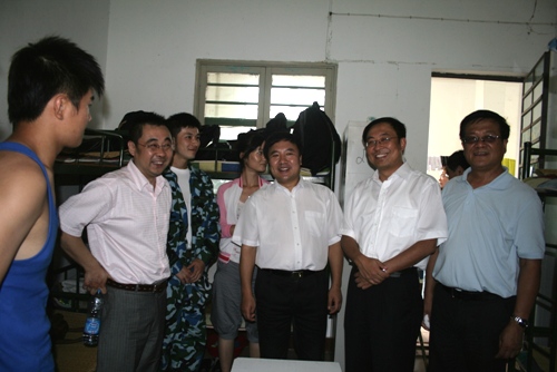 军训汇演结束后,领导、老师们来到军训基地寝室,与同学们亲切交流,关心同学们生活、学习等问题,同学们表示刚刚走进校园就感受到了来自于师长的关怀,感受到上戏大家庭的温暖。(文/学生处 图/雨田 编辑/雨田)