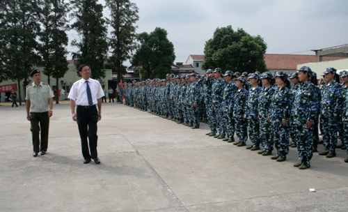 楼巍书记在军训汇演上讲话,首先对同学们良好的作训表现表示肯定,赞扬了同学们吃苦耐劳的精神,同时也对同学们提出殷切希望,希望大家把这种良好的精神风貌带回学校,促进专业学习,迎接祖国六十岁生日和明年世博会及学校六十五周年校庆。