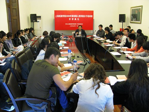 11月5日,上海戏剧学院2009年度第四、第五期(莲花路校区)入党积极分子培训班开学典礼举行。华山路校区的50余名入党积极分子在佛西楼会议室参加开学典礼,我院党委书记、党校校长楼巍,组织部部长邱中岳出席开学典礼。