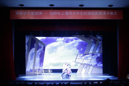 昨晚(11月16日),继2008年上海成功承办中国首届校园戏剧节之后,“莘莘学子爱国情”――2009上海大学生校园戏剧展演开幕式在上戏剧院隆重举行,上海市教卫党委副书记、副主任莫负春,上海戏剧学院院长韩生、副院长葛朗,和来自上海市文联、话剧艺术中心、教育电视台、上海戏剧学院等单位的专家评委,以及市教卫党委宣传处、教委德育处、体科艺卫处、市大学生科技创业基金会的老师们共同出席了开幕式。