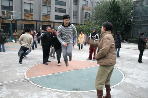 本届运动会分为集体项目和个人项目两项,集体项目有定点投篮、背挤篮球、捡玻璃球、跳长绳等,个人项目有跳短绳、掼结子、踢毽子等。虽然气温低寒,但教职工们不论男女老壮,参赛的热情高昂,欢声不断,绽放出青春的活力。
