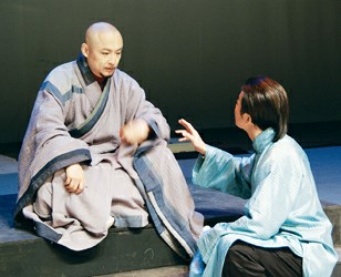 去年,宋怀强排演了文献剧《弘一法师》,为了更深入地进入角色,他还特意剃度出家,体验起出家人的生活。今年,再度出演同一个人物,只是表现形式从文献剧变成了音乐剧。一袭白色的僧衣,在清寒的冬日里,将宋怀强演绎的一代宗师衬托得格外俊逸清朗。