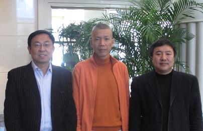 图为党委书记楼巍、院长韩生与蔡国强先生(中)合影