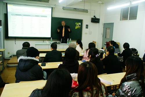Daniel Battiston教授是GfK集团于瑞士设立的专门从事媒体调查监测的分公司的总监,美国巴布逊商学院的MBA硕士。此次来到中国,为广大师生讲述其公司在媒体调查方面的经验方法。