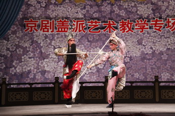 12月6日举行了“盖派”专场的演出。“盖派”是京剧武生行当的代表流派,由“京剧武生泰斗”盖叫天先生所创,其最突出的特点是“精、气、神”的完美统一。此次演出的《白水滩》、《武松打店》、《一箭仇》为“盖派”代表剧目。《武松打店》中的武松一角由我校资深教师、盖叫天先生的嫡孙张善元饰演。张善元老师已年过花甲,为了更好地传承“盖派”艺术,他每日坚持练功,不敢懈怠。当日,张老师一身短打,扮相英挺; 打、跃、翻、扑,干净利落,一招一式尽显“盖派”风采,逸夫舞台演出现场因张老师的精彩表演不时爆发出热烈的掌声,气氛达到了高潮。《白水滩》、《一箭仇》中的穆玉矶和史文恭则分别由我校03京剧表演班学生赵宏运、季永鑫饰演,他们是张老师的得意门生,年龄虽小但功夫不弱。看了他们的表演,观众们不禁发出感慨――“盖派”艺术后继有人。