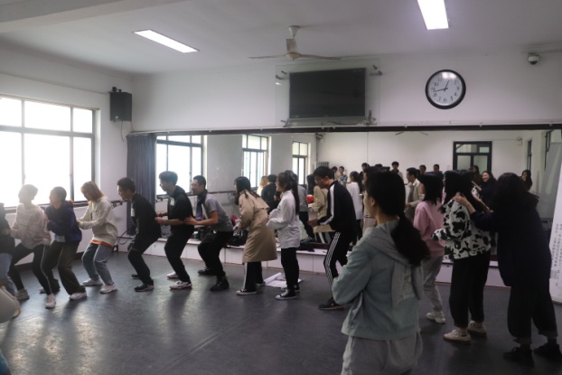 2019年11月14日中午11:40,在华山路校区2号形体房,一共30余名新生参与团辅活动。