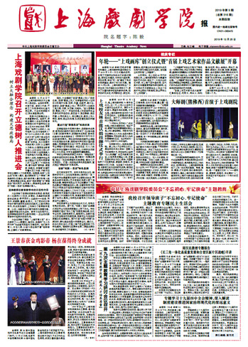 《上海戏剧学院报》2019年第9期(总第316期)已于2019年12月20日出版。重点内容有:《树立大融合理念 构建大思政格局 上海戏剧学院召开立德树人推进会》《年轮——“上戏画库”创立仪式暨“首届上戏艺术家作品文献展”开幕》《上戏校友林首批认捐挂牌仪式举行》《大师剧《熊佛西》首演于上戏剧院》等。敬请关注,也可点击下载阅读。(文、图、编辑:榕树)