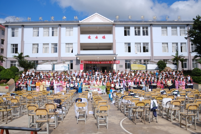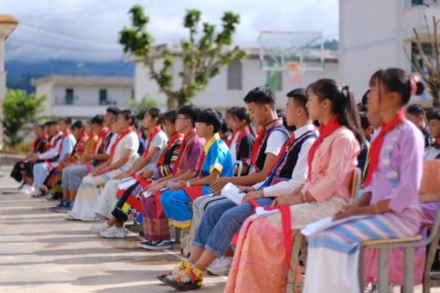 2020年7月30日清早,西双版纳勐海县勐宋乡中学山村学校广播站成立仪式在勐宋中学操场上举行。孩子们坐在台下用最认真的姿态与最热烈的掌声欢迎着上海志愿者的到来。