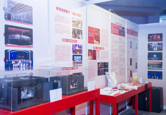上海戏剧学院的展览主题是“戏剧+思政 文创结合”,充分凸显了我校把握新时代思政工作的“事”、“时”、“势”,既遵循高校学生思想政治工作的普遍规律和共性特点,又充分结合艺术类高校的独特性规律和个性化特点,创新构建“戏剧+思政”这一具有鲜明特色的工作模式。上戏此次文创教育展览由教务处牵头负责,主要展品由及创意学院“红色文创·致敬岁月——课程思政成果展”中的文创产品,以及舞台美术系师生设计制作的舞台模型、电影电视学院学生的获奖短片构成。此外,戏曲学院的“京剧风采”与木偶剧《戏耍佛珠》也在展会现场进行表演,让海内外观众得以在现场体验到传统戏剧艺术的魅力。