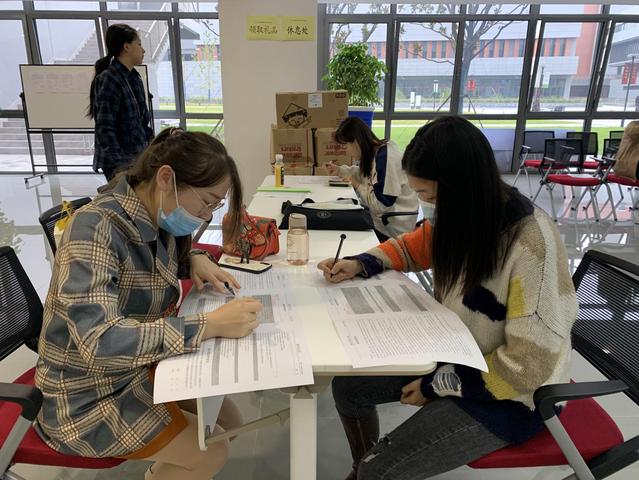 虹桥路校区的同学们紧随其后,在签到点逐一签到。