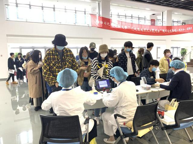莲花路校区的同学们最早到达献血点,整齐地排好队,等待工作人员的指引。
