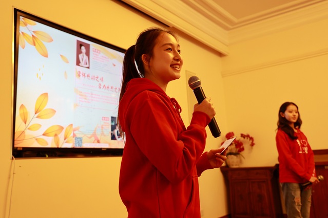 最后一位进行分享的是来自研究生部的刘帆同学,她曾获得挪威交换项目资助。她与资助的结缘源自2019年作为拉拉队去上海市参与高校十佳资助宣传大使决赛,当时很受感动,今年选择加入。在暑期她回到母校鹿邑县高中进行国家资助政策的宣讲,她想让更多的学弟学妹们明白:学习能充实我们的内心世界,而国家资助政策是贫困学子强有力的后盾。