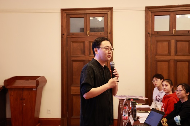 图为马聪老师在进行现场点评
