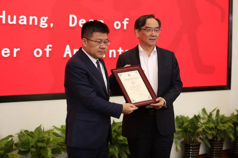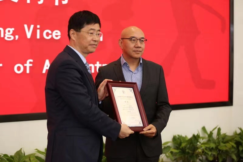 图为上海戏剧学院院领导为上戏电影教育咨询委员会委员颁发聘书