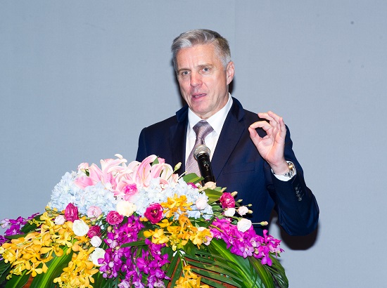 图为斯塔凡·劳丁发表主旨演讲