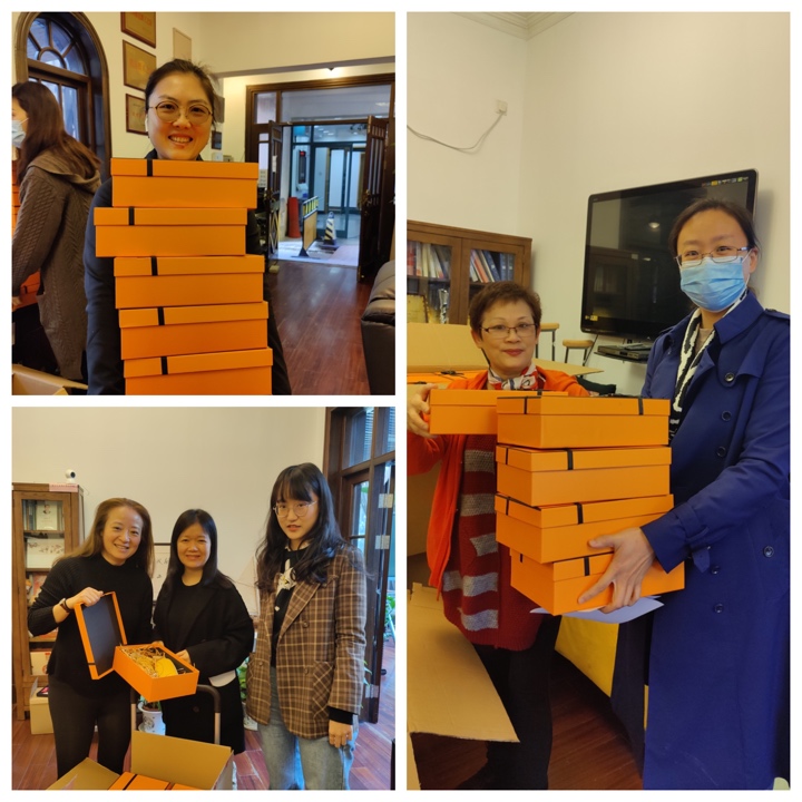 一早,上海戏剧学院工会常务副主席张云蕾就带领工会其他老师将精心准备的小礼物送到学院女教职工手中,也为她们送上最真挚的节日祝福。工会的老师们挑选今年的礼物时非常注重细节,每一样小礼物的挑选,甚至包装盒的样式和颜色、盒内填充物的搭配等等都非常认真。