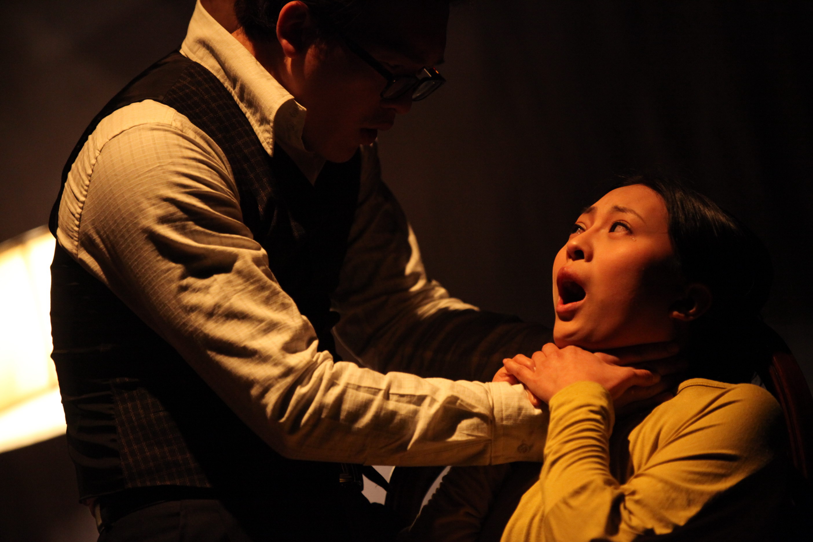 谷亦安(以下简称谷):客观原因来说,这是我的学生周燕燕的毕业演出,我们没有经费,所以想要不花钱就能够吸引观众,必须选一部规模不大、演员不多、课题又具有一定挑战性的剧本,于是我就想到了品特。品特有着高尚的戏剧良心,他胸怀全人类,质疑一切暴力、一切战争。品特的戏剧是一种胁迫戏剧,有着独特的构思,精密、精巧、精细,是一种超级写实的存在主义,不是荒诞戏剧,却反映了生活的荒诞。它能解放观众的想象力,使观众主动去探寻和索取。在品特看来,戏剧应该是由观众来创造的,注入了情绪,才有了一场活的戏剧和共同的世界。