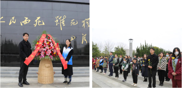 在“为人民而死 虽死犹荣”的纪念碑前,师生们庄严肃立,齐声高唱国歌并向纪念碑敬献花篮。在《没有共产党就没有新中国》的歌声中,大家深情缅怀为民族解放和人民幸福而牺牲的革命烈士,告慰先烈英灵。