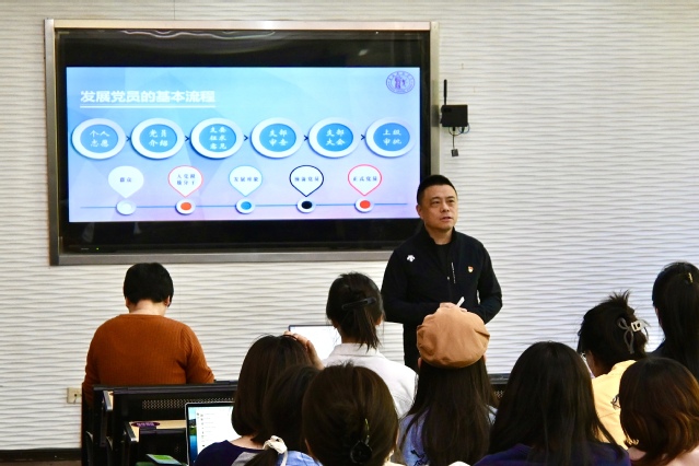 尹悦蓉老师首先向入党积极分子表示祝贺,随后为大家介绍了本次培训班的日程安排和考核要求,并希望学员们能够珍惜这次机会,努力学习,不断锤炼党性,在实践中坚定对党的信仰,争取早日站在党旗下。