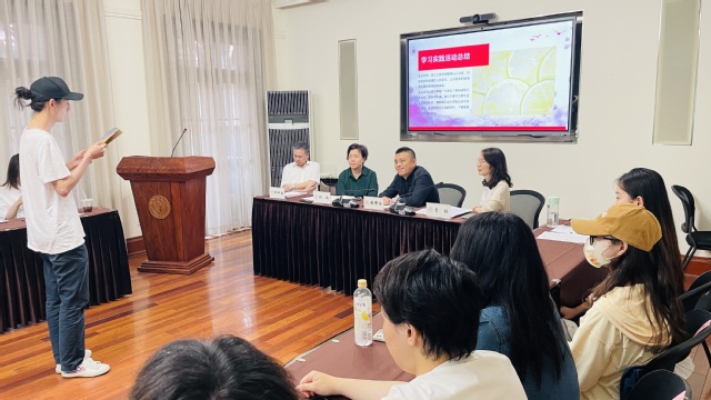B组的李双安桐作为串讲人,通过展现滨江百年前后的对比,突出杨浦滨江在城市区域改造方面的卓越建树。王诺、杨芷淳两位同学分享短片构思,聚焦城市建设规划展示馆和祥泰木行的改造案例,以介绍+采访+感悟的形式带领大家走入杨浦滨江。之后组内的其他成员分享感悟,他们纷纷表示这次考察是跟随习近平总书记上海足迹所进行的一次重要学习实践,滨江的成功改造体现了新时代的创新意识,给予了我们新时代青年要勇于创新、敢作敢为的启示,心中要时刻不忘“全心全意为人民服务”的宗旨和以人为本的核心立场。