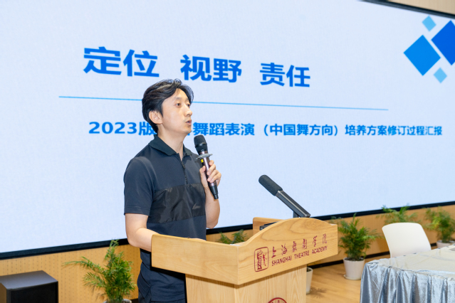 随后,院系代表围绕本科人才培养方案的修订,分别从不同角度展开交流。创意学院副院长铁钟的发言主题为《“指南”引领 平台推进——以课程思政建设为引领修订本科人才培养方案》,舞台美术系副主任沈倩的发言主题为《培养面向未来的舞台美术人才》,戏曲学院副院长金喜全的发言主题为《传承优秀传统文化 培养戏曲艺术人才》,舞蹈学院院长张麟的发言主题为《定位 视野 责任 ——2023版本科舞蹈表演(中国舞方向)培养方案修订过程汇报》。