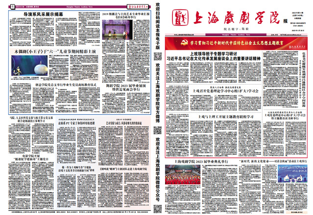 《上海戏剧学院报》2023年第4期(总第340期)已于2023年6月30日出版。重点内容有:《上戏领导班子专题学习研讨习近平总书记在文化传承发展座谈会上的重要讲话精神》《聚焦人才培养 推进高质量发展 上戏召开党委理论学习中心组(扩大)学习会》《党委书记谢巍实地调研昌林路校区办学空间资源 市委主题教育第19巡回指导组列席指导》等。敬请关注,也可点击下载阅读。(文、编辑:榕树)