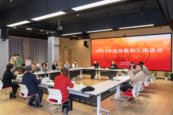 1月24日,2023年退休教职工座谈会在华山路校区智慧教室举行。上海戏剧学院党委书记谢巍,党委副书记、院长黄昌勇,党委副书记、副院长、工会主席张伟令出席了会议,并与教职工们亲切座谈,并为退休教职工送上学校的祝福。