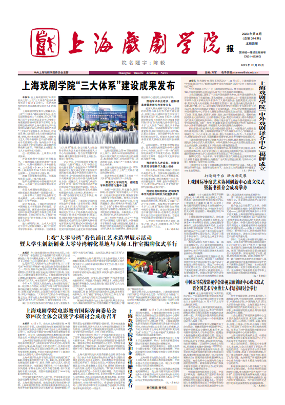 《上海戏剧学院报》2023年第8期(总第344期)已于2023年12月25日出版。重点内容有:《上海戏剧学院“三大体系”建设成果发布》《上海戏剧学院“中外戏剧译介中心”揭牌成立》《上戏国际导演艺术协同创新中心成立仪式暨新书推介会成功举办》《中国高等院校影视学会影视表演创研中心成立仪式暨全国艺术专业博士人才培养研讨会举行》等。敬请关注,也可点击下载阅读。(文、编辑:榕树)