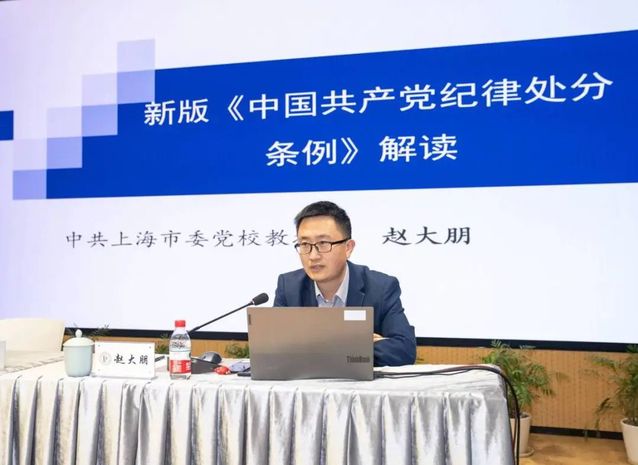 培训班第一讲邀请中共上海市委党校党的建设教研部副主任赵大朋教授,专题解读新修订的《中国共产党纪律处分条例》(以下简称《条例》)。他紧扣《条例》中的政治纪律、组织纪律、廉洁纪律、群众纪律、工作纪律、生活纪律进行解读,深入剖析了大量违纪典型案例,警示党员要把守纪律、守规矩落到实处,把纪律刻印在心,知敬畏、存戒惧、守底线。