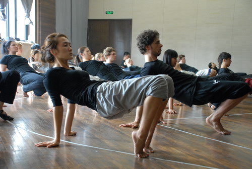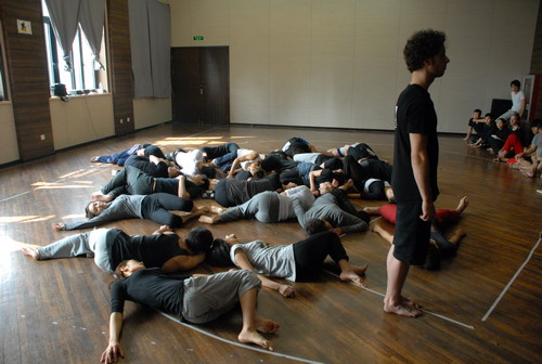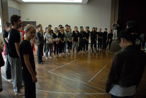 这次德国巴伐利亚戏剧学院交流生的带班老师就是《狗镇》和《曼德拉庄园》的导演。在交流的前一天,我们就一起观看了《曼德拉庄园》,怀着对这部戏的崇拜,我们一开始就充满了极大的热情和期待。早上九点,巴伐利亚戏剧学院的老师和同学们来到了东排,陈莹老师代表表演系欢迎他们的到来。双方互相认识后,我们就开始了第一天的训练。他们主要训练大家的默契度、注意力,要同时关注自己、对手还有空间,很具有挑战性,当然也很有趣。在他们进行完第一轮表演后,我们的同学立即热情地加入进去,和他们一起练习,一起讨论。时间很快过去了,第一天上午的工作坊,就在大家的欢乐和汗水中结束了。下课前,热情的德国朋友给我们带来了他们的礼物,一堂课下来大家都成为了很好的朋友。