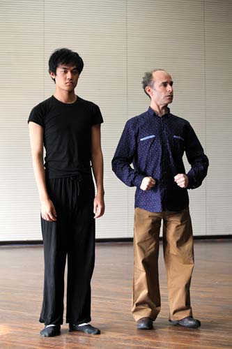 上午9:00在红楼东排,我们与Uri在进行了简短的交流后,就开始了第一堂课。首先老师让我们都坐在了一边,然后去感受我们对面的空间,如果有欲望想要进入空间的人就可以走入空间内,于是,第一批同学就陆陆续续地走进了场内,都很放松的在做自己的事情,过了几分钟后,老师让场上的人都下去了,唯独留了一位女生在台上继续做她自己的事情。在那位女生做完后,老师向我们讲解道,我们之前上去的人都只是找了一块自己的地方,然后就在原地不动了,而那个女生却与这个空间内的一部分在做交流。所以,他想要告诉我们的是,我们要学会去感受空间,感受空间内的一切,然后代入自己的想象去设想这个空间。后来,一波又一波的同学都进入这个空间去努力尝试老师所说的内容,老师也一遍又一遍的为我们讲解。终于,在到了最后一组同学上去的时候,我们得到了老师的认可,老师说我们做的非常好,但是,我们也仍有问题,例如没有把握好整体的节奏,一直都只停留在一个节奏上而没有变化。这是我们下去后还应该思考的地方。