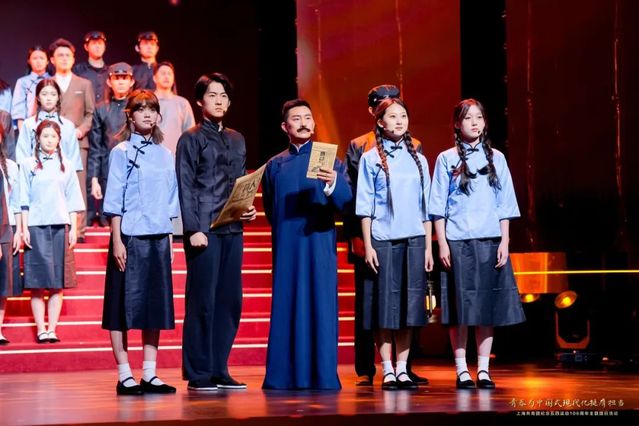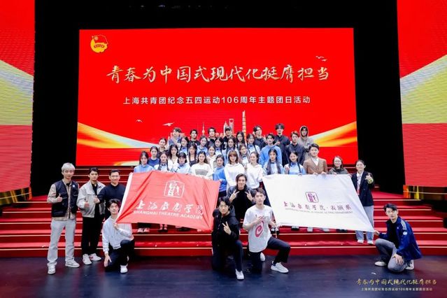 4月29日,为纪念五四运动106周年,上海共青团举行“青春为中国式现代化挺膺担当”主题团日活动。上海戏剧学院表演系学子在活动中担纲重要演出任务,参演第一篇章信仰如炬·矢志不渝舞台剧,并担任实践作答篇章的串讲。同学们以精湛的演技和饱满的热情,生动再现了五四青年追求真理、坚守信仰的崇高精神,展现了新时代表演艺术学子的专业素养与青春担当。