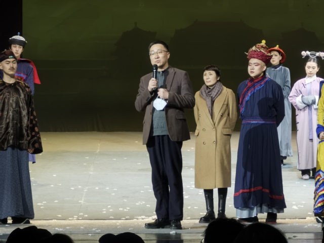 演出结束后,本次毕业大戏的导演、上海戏剧学院表演系教授肖英老师发表讲话。肖老师在台上动情讲述这部剧的台前幕后:从20229月起,《德龄与慈禧》进入排练,在短暂的排练阶段,出现了不同程度的封控、赋码等艰涩时刻。解封后,剧组线下排练正如火如荼进行时,全剧组人们陆续开始感染病毒,高烧状态下大家从未退缩不前,全组人员勠力同心,在校领导、教务处、演艺中心、学工部及表演系领导同仁们的大力支持下克服困难,立志讲好中国故事,身体力行的去上一节生动的思政课——扎扎实实地创造人物,坚持才能有所收获。