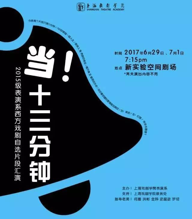 2017年6月29日、7月1日两天,在新实验空间剧场,上戏表演系15级戏剧影视本科班的同学们,为大家进行了西方戏剧自选片段汇演。本次汇演,吸引了校内外大量观众前来观看。