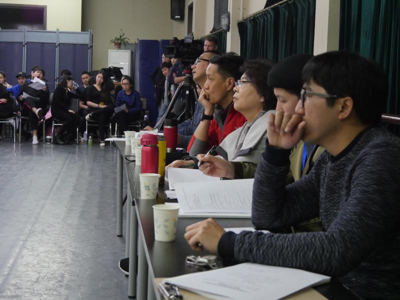 2017年12月29日下午,表演系17级迈斯纳方法实验班在一号形体房进行了《声音训练(1)》课程的期末考试。本次课程的考试评委会成员有上海戏剧学院表演系副教授杨佳老师,上海戏剧学院表演系声乐教师张志勇老师,上海戏剧学院特聘教师李旻原老师,还邀请了北京人民艺术剧院演员、著名表演艺术家冯远征老师以及中央戏剧学院表演系教授、硕士生导师王丽娜老师。