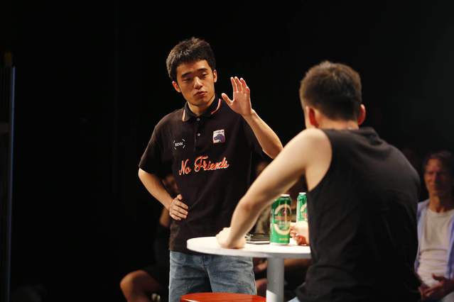 下午1点,2018级全体师生转场新空间剧场,进行了《语言技巧》汇报考试。全程包含了薛光磊老师组、刘兵老师组和孙鱼洋老师组三组同学,不同的教学方法与汇报形式,呈现了一台精彩绝伦的台词展示。薛光磊老师让本组同学以2-3人为一组上台进行幽默有趣的相声节目串烧,“捧”与“逗”中体现同学们抛梗接梗时地轻松和机智,考查同学们在剧场中对于台词基本技巧的掌握与运用;刘兵老师组的同学们展示了散文、双人台词小段,展示台词基本功的同时将表演融入到台词的表现中去,整体的汇报有序且全面;孙鱼洋老师组的同学们展示了贯口、评书片段以及经典话剧《雷雨》的台词片段,表现出色。三组同学们顺利完成考试内容,体现出了一个学期系统学习《语言技巧》课程之后的成长与进步。