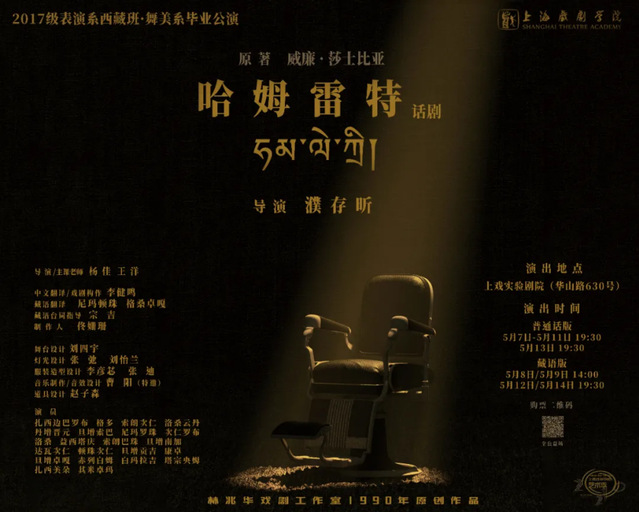 近日,作为今年上戏艺术季展演剧目之一的《哈姆雷特》在大麦网开票,将在5月7日至14日于上戏实验剧院上演。该剧作为海戏剧学院表演系2017级西藏班的毕业大戏,由上戏校友、著名演员濮存昕担任总导演,分为“普通话版”与“藏语版”两个版本与观众们见面。